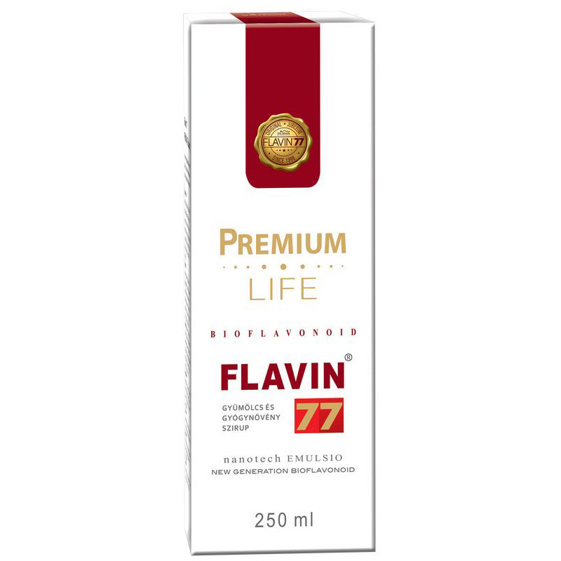 Különleges, magas minőségű készítmény. Az alap összetevőin túl még 10 polifenolt tartalmaz emelt dózisban. Főbb hatásterületek: - szív- és érrendszer - kiemelten magas flavonoid tartalom - immunrendszer erősítése Összetevők : 77 fajta gyümölcs, virág, mag, gyógyfű, fűszer, gyökér, levél A Flavin77 Prémium Life egy olyan különleges magas minőségű készítmény, amely tervezésénél két dolgot vettünk figyelembe. Elsőként kiválogattuk a gyógynövényvilág élettani szempontból leghatékonyabb fajait, majd éveken át tartó kísérletek eredményeképpen sikerült azokat nano méretűre őrölni.