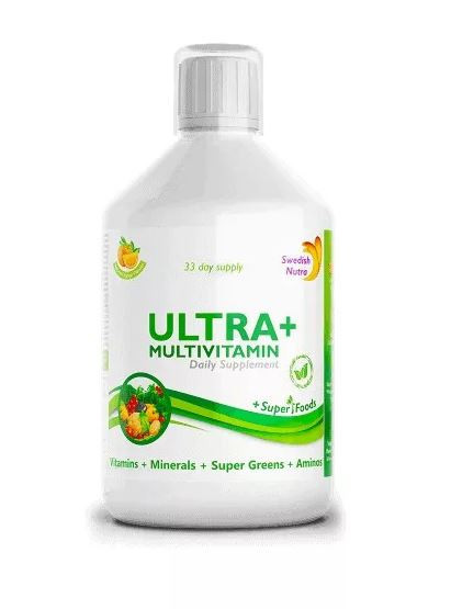 A Swedish Nutra Ultra+ folyékony multivitamin egyedülálló, több mint 60 aktív hatóanyagának, köztük az antioxidánsoknak és szuperélelmiszereknek köszönhetően.